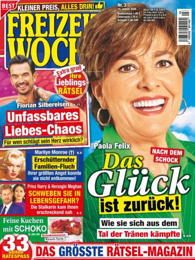 FREIZEITWOCHE bietet wöchentlich aktuelle Reportagen & Interviews über nationale und internationale Prominenz aus den Bereichen Show, Musik, Film und Fernsehen und präsentiert im Abo spannende Geschichten und Hintergrundberichte aus den Adelshäusern.